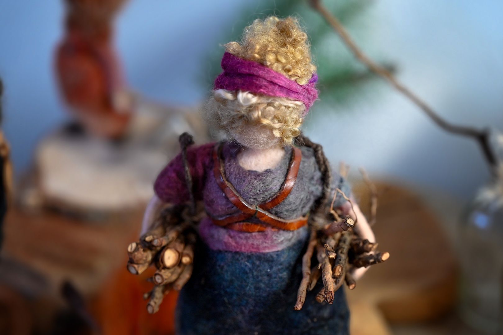 Op de seizoenentafel staat van oudsher Moeder Aarde, met brilletje, een grijze knot en een breiwerkje.