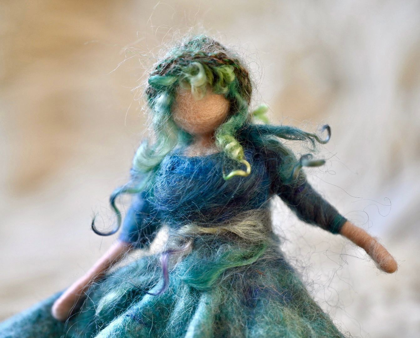 Van mij krijg je een basispop, die al een hoofdje heeft en deels bedekt is met neutraal kleurige wol. Je gaat hiermee zelf verder om kleuren en vormen aan te brengen.